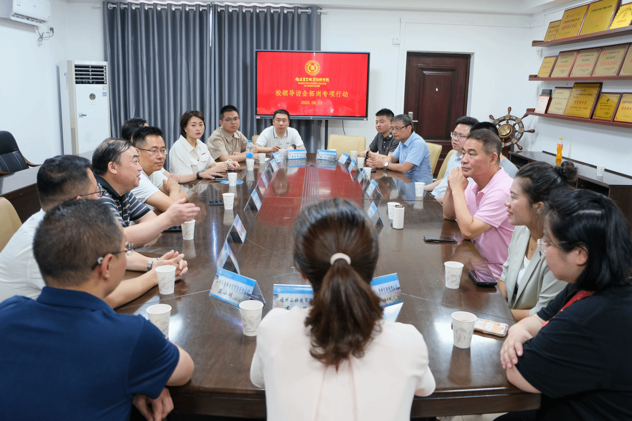招聘会期间,学院举办了校领导访企拓岗专项行动座谈会。杨振坦书记、王振亮副书记及相关院系负责人,与天禾股份、福建丰泽农牧饲料有限公司、福建苏宁易购商贸有限公司、福州顺丰速运有限公司、福建邻几便利店有限公司12家优秀企业代表进行了深入交流。