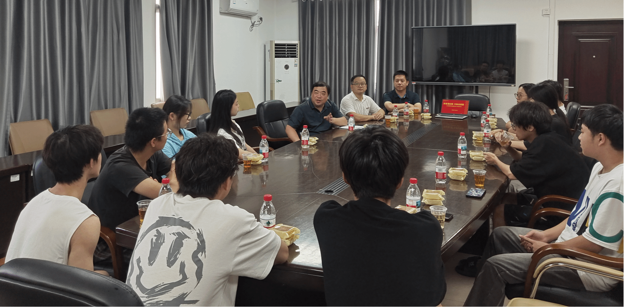 中秋月圆暖意浓,首山校区聚温情。为让中秋留校学子感受“集体如家”的温暖,10月6日上午,经济管理学院以“茶香漫经管·中秋话团圆”为主题,在首山校区1号楼215会议室开展中秋茶话会活动。经济管理学院党总支书记郑旭东、值班辅导员杨宏强、郑宇与12名留校学生欢聚一堂,以茶为媒、共话家常、欢度佳节!