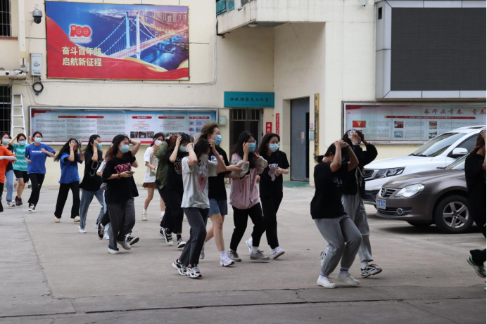 上午9时40分,随着模拟警报声响起,防震应急疏散演练正式开始。21级学生在引导下,按疏散路线,沿着楼道、楼梯,迅速通过安全出口,撤离教学楼及宿舍楼。待师生到达操场安全集合地点后,各班迅速清点人数,各班班长分别向演练总指挥报告安全到达人数。整个演练均在规定时间内,安全疏散到空旷地带。