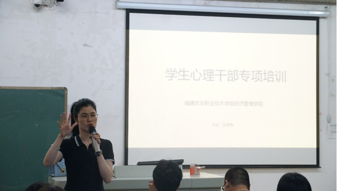 为增强经济管理学院辅导员名师工作室在学生当中的影响力,发挥工作室为学生做实事的宗旨。8月31日晚,经济管理学院名辅导员工作室邀请了福州软件职业技术学院心理健康教研室主任吴爱梅副教授为经济管理学院全体心理委员、宿舍安全信息员开展心理健康工作专项培训。