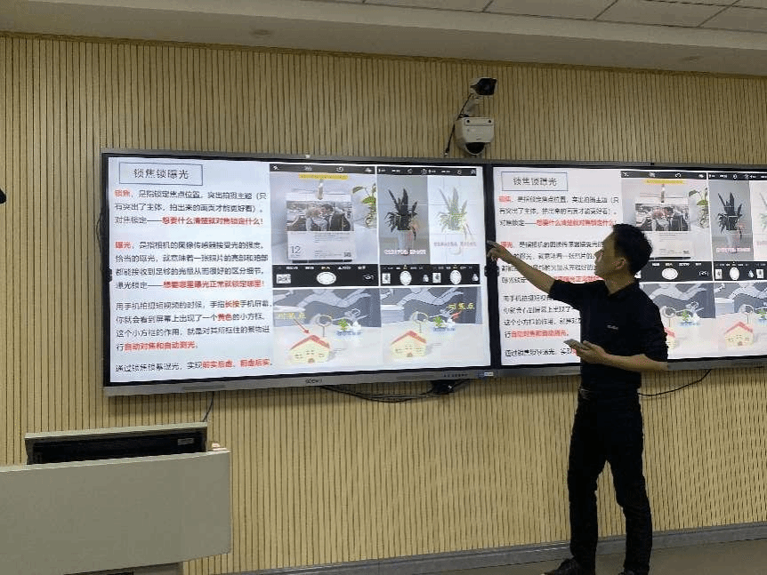陈乐群教授先向同学们展示了学校近期参加短视频制作大赛的获奖作品,并对作品创作主题与拍摄技巧进行点评,以此激发同学们对手机短视频制作的兴趣。然后从手机相机设置、运镜方法、景别认识、构图技巧、短视频剪辑常用工具(剪映、创作猫、醒图、美图秀秀)等方面进行深入解析与交流分享。