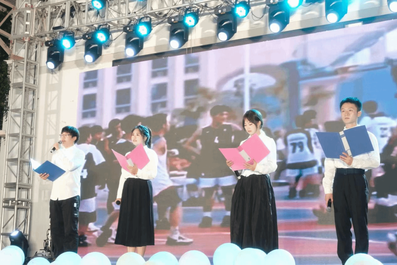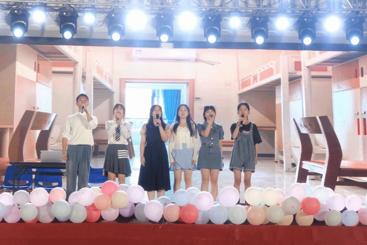 晚会现场灯光绚丽、节奏欢快,即使夏雨绵绵也浇不灭同学们的热情。“我以青春向祖国告白,行囊装满期待,滚烫的心,流淌着红色血脉……”伴随着开场歌曲《未来我来》的激昂歌声,晚会正式开始。《未来我来》诠释了青年人对未来的态度,彰显了中国青年在新时代下的精气神,演唱的四位同学用蓬勃向上的青春力量彻底点燃了现场的氛围!