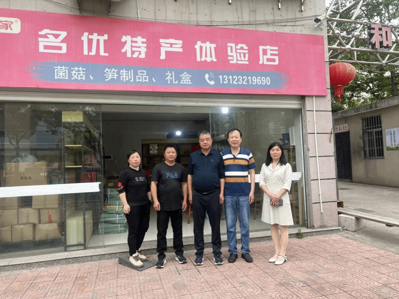 在松溪渭川田家的鲜菇姑家名优特产体验店合影