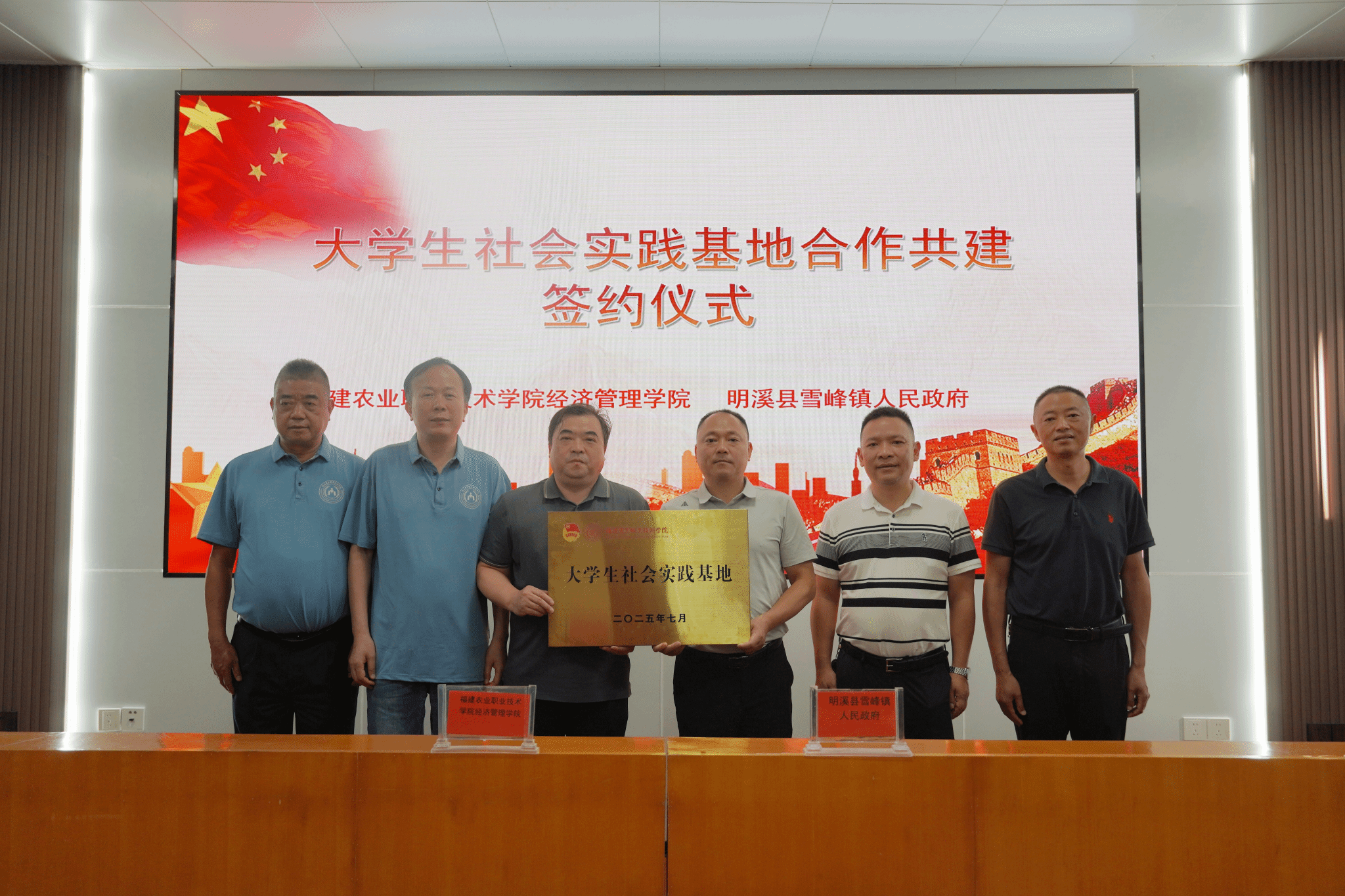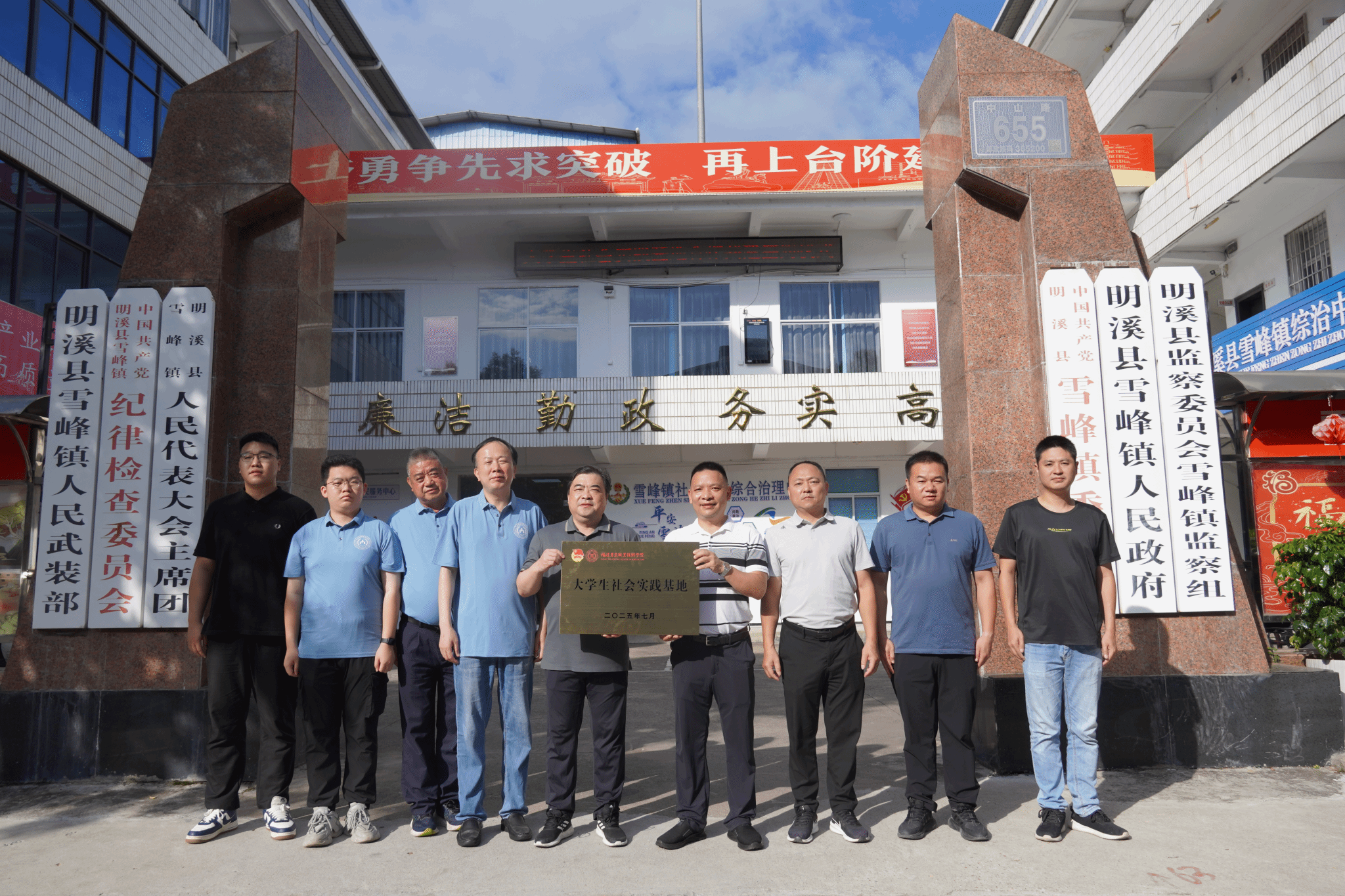 2025年7月4日,bat365在线登录网站注册赠送36经济管理学院与三明市明溪县雪峰镇人民政府在雪峰镇人民政府会议室举行大学生社会实践基地签约暨授牌仪式。雪峰镇党委书记章炜、镇长林永强、副镇长李旺根,经济管理学院党总支书记郑旭东及学院三下乡社会实践队师生代表共同出席仪式,见证校合作迈向新阶段。