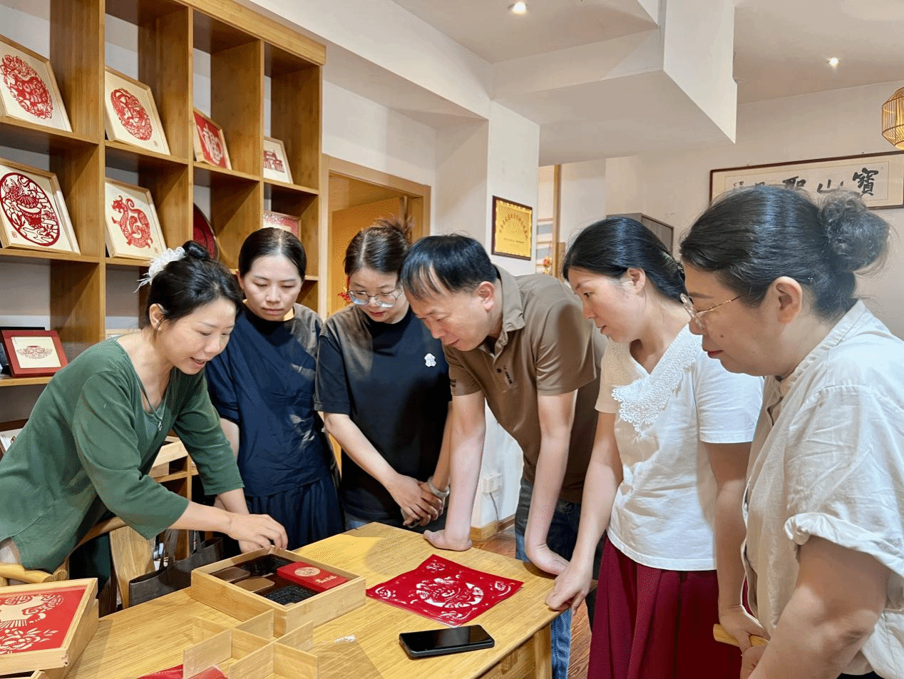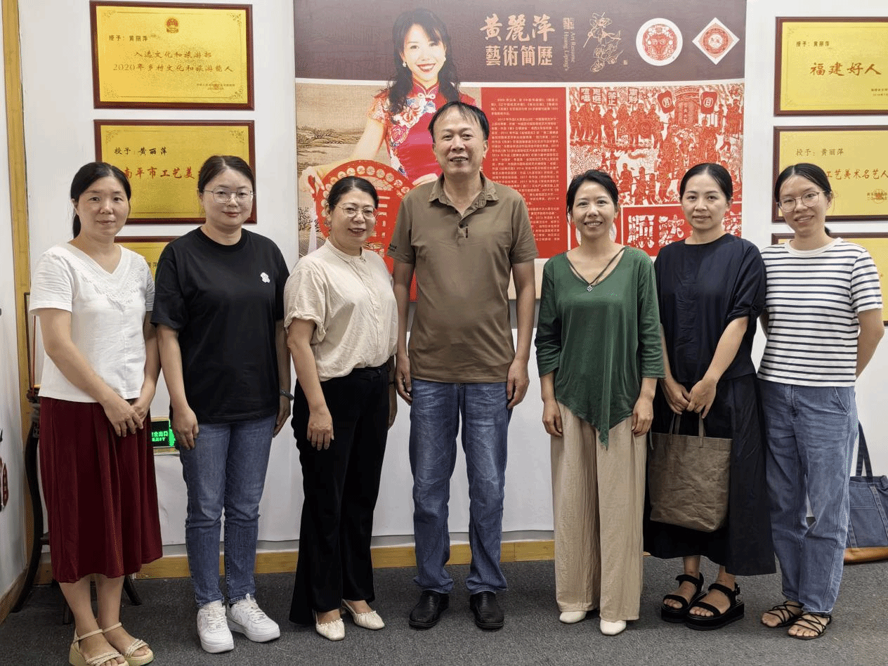 在黄丽萍非遗剪纸工作室,教师团队参观了剪纸创作短视频拍摄和直播过程,结合电商运营经验,针对工作室“线上推广 +文创开发”方案开展交流,建议将“顺昌山水”“乡村振兴”主题更巧妙融入剪纸文创,将非遗元素与钥匙扣、笔记本等日常用品结合。学院希望组织学生志愿者定期到工作室开展实践活动,协助整理剪纸作品、接待游客,在学习非遗技艺的同时,为文化传承注入青春力量。