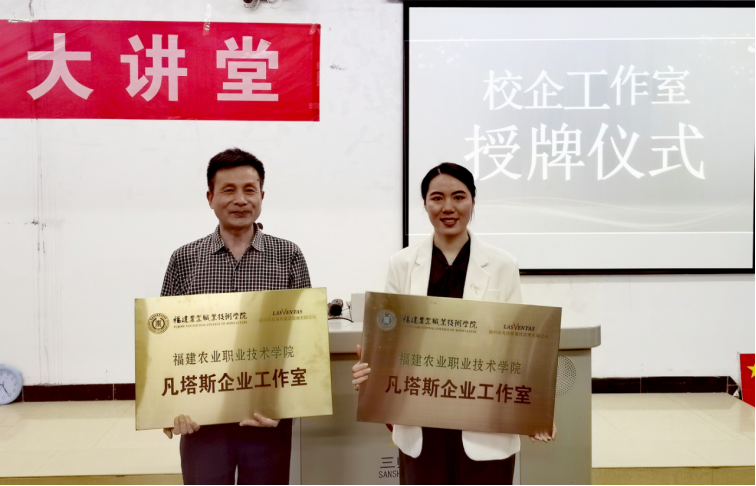 接着,经济管理学院杨承亮书记和凡塔斯企业何芳经理代表校企进行凡塔斯企业工作室签约、授牌,并颁发客座讲师聘书。