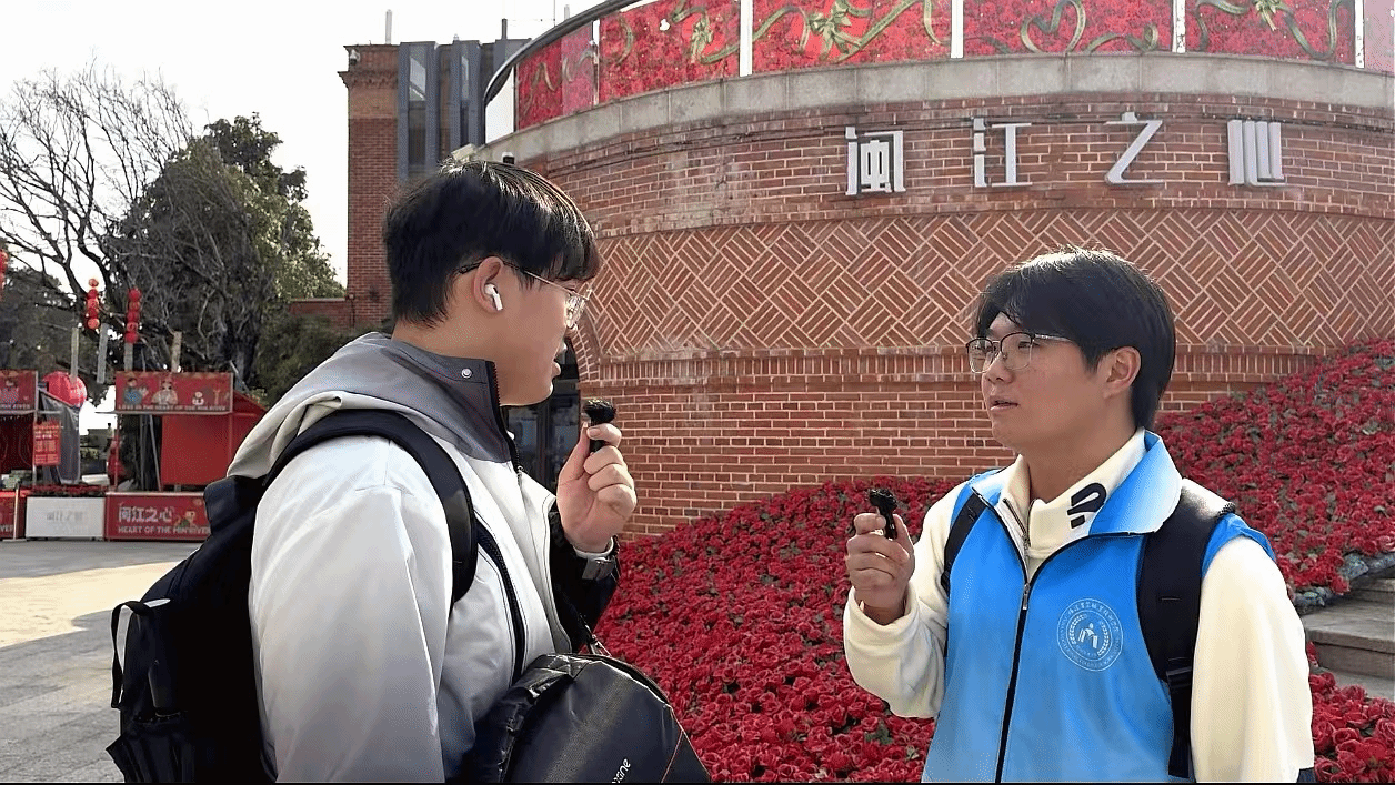 在闽江之心公园采访游客