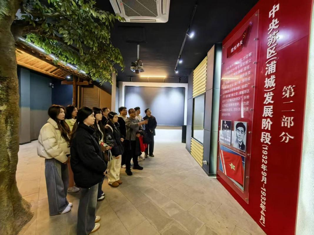 循着红色印记,团队来到浦城中央苏区纪念馆。馆内一张张泛黄的老照片、一件件布满岁月痕迹的旧实物、一段段翔实的文字史料,无声诉说着浦城在中央苏区时期的光辉历程。在讲解员的生动解说下,队员们重温了革命火种从播撒到壮大、红色政权从建立到巩固的艰辛征程。大家边听边看、踊跃交流,沉浸式的参观学习让所有人深刻体会到革命胜利的来之不易,心中的红色信仰愈发坚定。