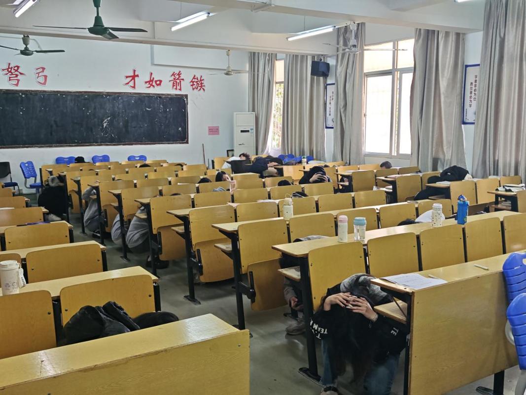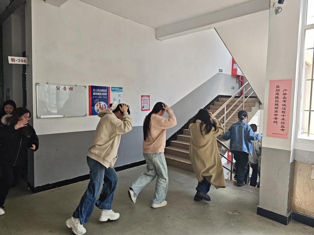 随着地震预警”信号响起,生们迅速采取行动,分别在教室、宿舍开展应急避震演练环节,安全员老师组织学生进行应急避震,同学们迅速、有序地抱头躲避在课桌下、教室承重墙角落、宿舍铁架床下。其次是紧急疏散逃生演练环节,同学们按照定的疏散路线有序撤离,有条不紊地从安全逃生通道疏散到空旷的操场安全区域。在疏散过程中,生们保持冷静,迅速而不慌乱,充分展师生们应对突发事件的应急能力和自救互救意识。
