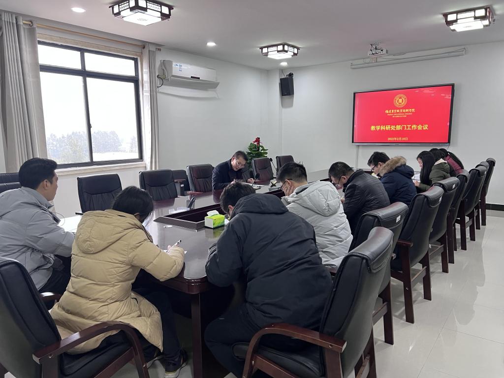 2022年2月18日上午,教学科研处在闽台605召开部门开学初工作部署会。会议由林立忠处长主持。