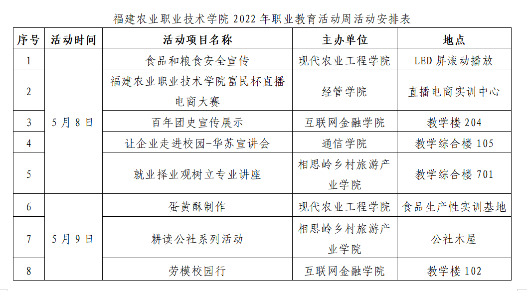 为贯彻落实全国职业教育大会和《国家职业教育改革实施方案》精神,普及宣传新的《职业教育法》,大力弘扬劳动光荣、技能宝贵、创造伟大的时代风尚,宣传展示技能创造美好生活。5月8日-5月14日我院将紧紧围绕“技能:让生活更美好”主题开展2022年职业教育活动周活动。
