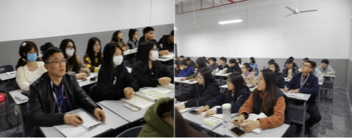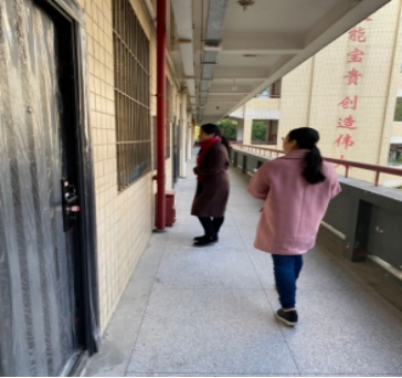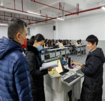 图为何东进校长、侯志宏副校长、黄靖副处长开学初听课检查