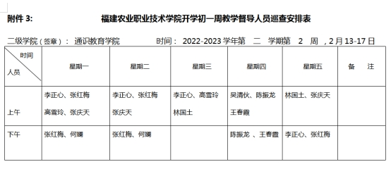 根据闽农职质〔2023〕1号文件《bat365在线登录网站注册赠送36关于做好2022—2023学年第二学期期初教学质量监控工作的通知》要求,2023年2月10日---2023年3月4日,由校级督导、二级学院督导及学生督导组成的学校“三级”教学督导体系开展了学期初教学质量监控与督导工作。