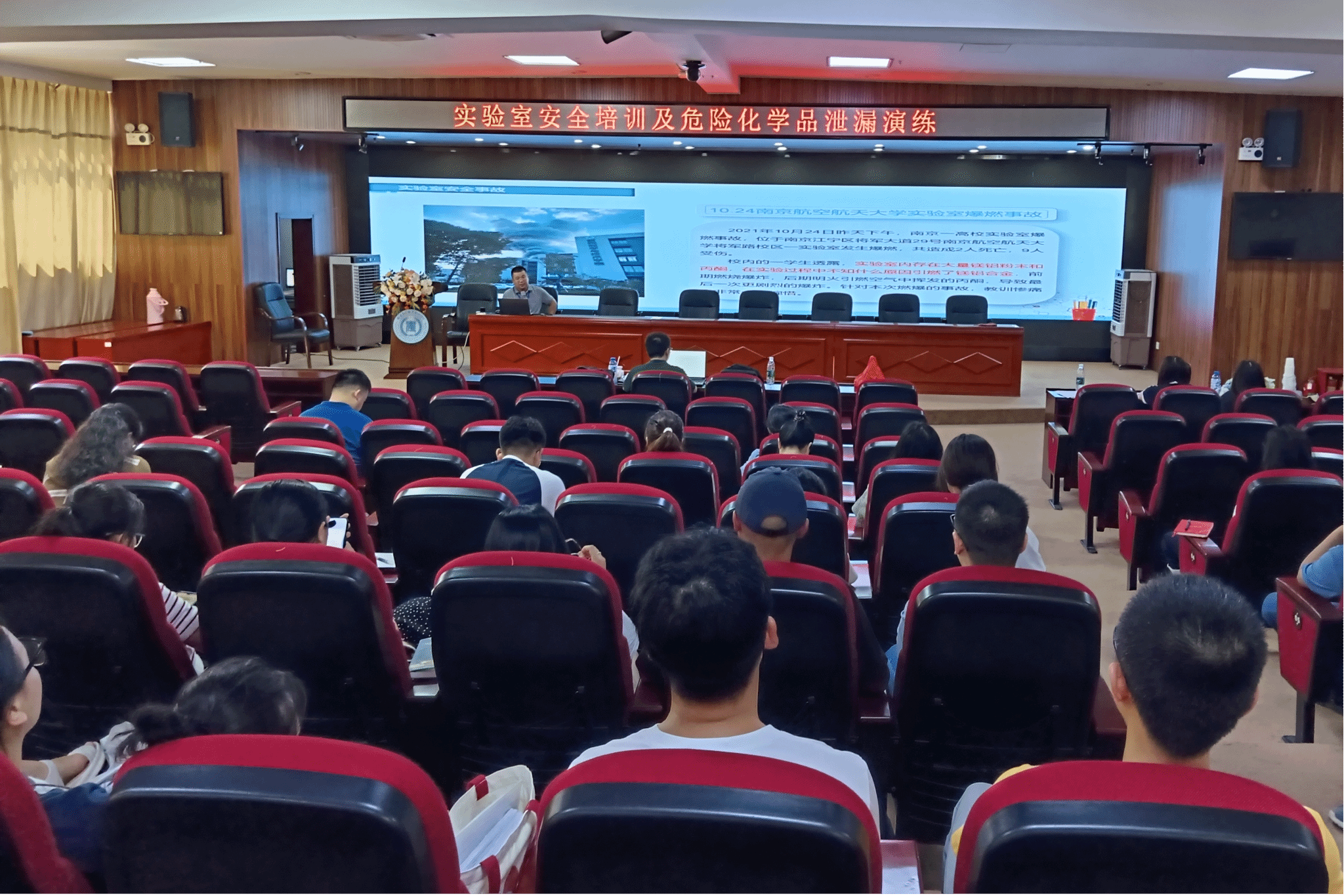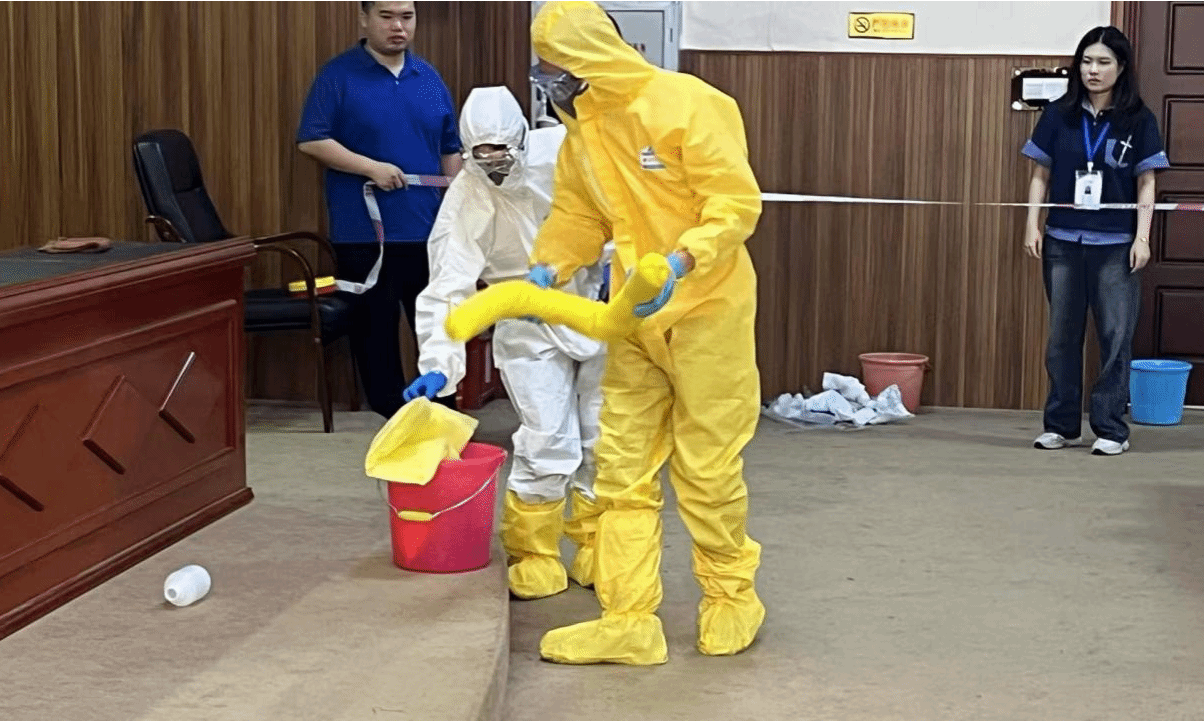 反馈会结束后,专家对实验室安全管理、实验室分级分类管理等进行培训,培训后对实验室危险化学品泄漏进行演练,提高安全意识,养成良好的安全习惯。