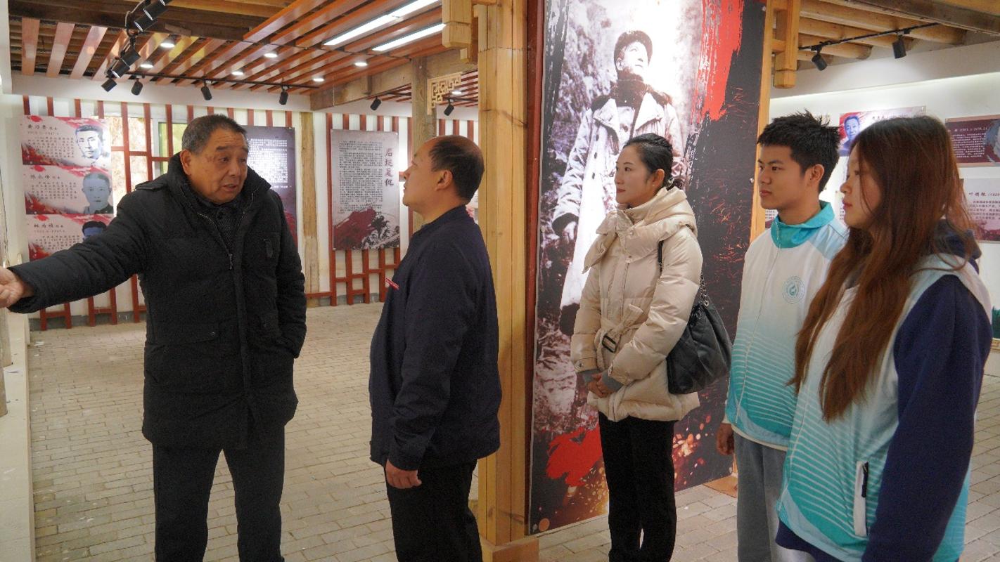 在江作宇革命生涯展示馆,实践团师生在沉浸式参观中接受精神洗礼。江作宇同志之子江虎先生亲自担任讲解员,深情讲述了父亲从求学立志到投身革命、建设家乡的奋斗历程。作为我校杰出校友,江作宇同志的一生坚守理想信念,践行对党忠诚、为民奉献、艰苦奋斗的革命精神。馆内陈列的一件件实物、一幅幅图片、一段段史料,深深打动在场每一位师生。