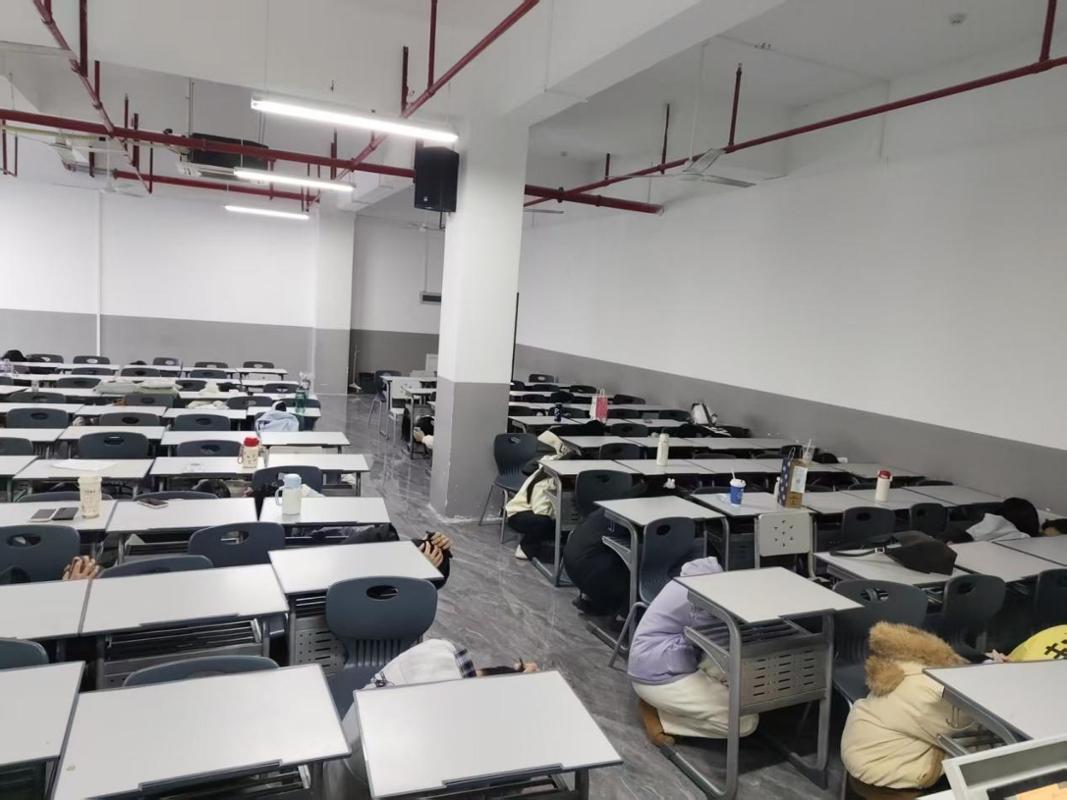 随着短促的警报声响起,各教室授课教师立即停止讲课,指挥学生迅速躲至桌下,双手抱头、抓紧桌腿,远离窗户和悬挂物。60秒后,长音警报响起,学生按前排先行、后排跟进原则,沿走廊右侧和指定楼梯有序撤离,全程弯腰低姿、靠右快行,不推搡不折返。楼层引导员在各转角值守引导,授课教师最后撤离并关闭门窗,确保无一人滞留。