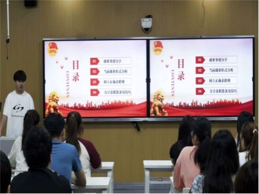 最后,苏运鸿同学告诉大家求职面试时要注意的事项:求职简历要制作完整;面试时着装得体;与面试官交流时自信大方、亲切友善;同时面试时要展现出自己的优势。