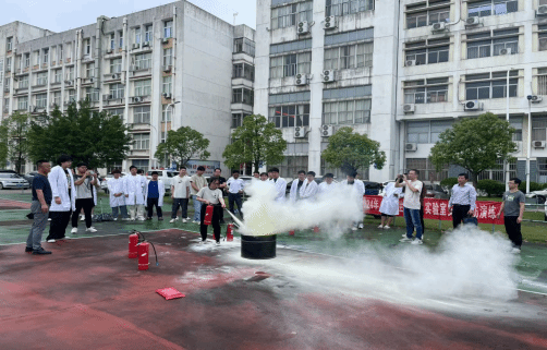 新进实验系列教师进行灭火器使用操作演练