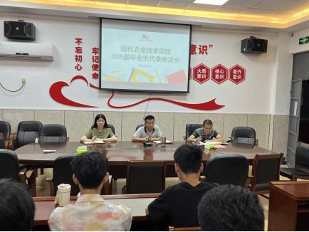 为更好推进学院教育高质量发展,进一步做好2025届毕业生相关工作。2024年6月18日,现代农业技术学院在教学2号楼302教室召开2025届毕业生代表座谈会,院长陈文胜、副院长吴伯文、学工办负责人沈云玉以及2025届毕业生代表参加座谈会。