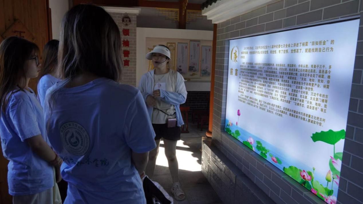 实践队师生一同走进上坪古村,途经古建筑、小溪流、荷花池,参观改造书吧、四知堂,感悟上坪村的历史变迁。在讲解员的介绍中,师生们进一步的了解到上坪村改造书吧由牛棚改造的过程和四知堂的历史文化故事。上坪村以农耕文化为魂,以美丽田园为韵,以生态农业为基础的发展之路,既是村民古朴智慧的传承历程,更是“绿水青山就是金山银山”的有力论证。