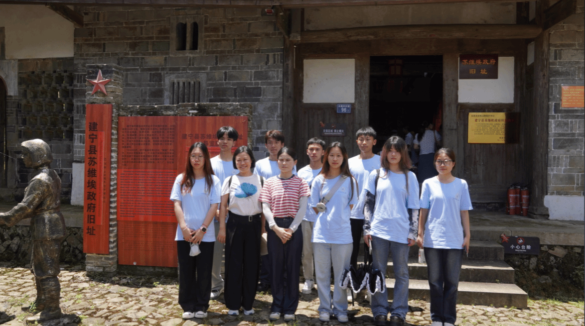 紧接着实践队奔赴水尾村深入探访苏区兵工厂旧址、苏维埃旧址、闽赣军区基干司令部旧址及礼堂。水尾村被誉为“红色小井冈”,曾是红军的重要后方根据地。参观过程中,大家不仅领略了丰富的红色文化遗产,还深刻感受了当年红军在此艰苦奋斗的历史。在苏区兵工厂旧址的残垣断壁间,我们不仅感受到了历史的厚重,更在彼此的支持与协作中,完成了对革命岁月的深刻领悟。苏维埃旧址和司令部旧址则见证了革命政权的建立与巩固,礼堂内的红色教育,更是将我们紧紧相连,共同肩负起传承红色基因、弘扬革命精神的责任。