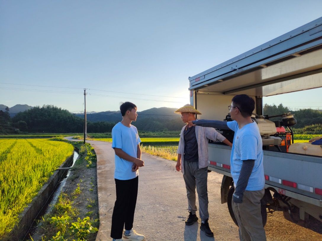 实践队师生在建宁县农业农村局农技推广中心吴景栋主任陪同下,来到建宁县新农友公司学习交流无人机植保作业。实践队队员刘凯说,这次实践调研他深刻感受到“纸上得来终觉浅,绝知此事要躬行”的道理,在学校他虽已进行过无人机培训,但实际无人机植保作业还需考虑作物种类、高度、阳光、气温等各方面因素影响。队员们通过调研发现,目前建宁县植保无人机等智慧农业以及现代农业装备普及程度还较低,队员们都表示毕业后要发挥自己所学知识,努力成为我国农业发展新动力。