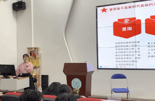 翁佩莹老师以《弘扬爱国奋斗精神,努力建功新时代》为主题,从什么是爱国主义,爱国的基本要求,新时代爱国主义精神,做新时代好青年这四个方面向同学们介绍了爱国主义这一中华民族悠久的文化传统。她强调要以实际行动践行爱国精神,为国家的繁荣富强贡献自己的力量。