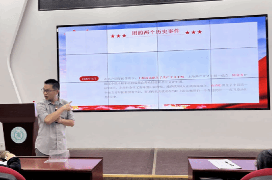 胡彩艳老师以《重温团史 砥砺前行》为主题介绍了共青团的历史沿革和团的四个历史阶段。阐述了学习团章,是贯彻落实习近平总书记关于青年工作的重要思想,是每一名团员的必修课。作为共青团员,必须时刻牢记中国共产主义青年团在新时代的基本任务,做到修身立己,勇于担当,干在实处。