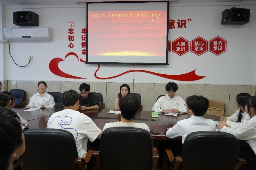 仪式上,陈伟成老师带领新团员们一起学习《中国共产主义青年团章程》的相关内容。陈伟成老师强调了中国共产主义青年团的性质及地位、中国共产主义青年团在现阶段的任务、中国共产主义青年团建设的基本要求,引导同学们要明确团员在团内的权利与义务。