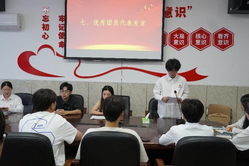 随后,付诗梦同学代表新团员进行发言并作出郑重承诺:“将恪守团员职责,勤勉学习,发挥表率作用,秉持着全心全意为人民服务的理念,致力于为群众办实事,用实际行动回馈组织的培育之恩。”相思岭乡村旅游产业学院团总支副书记万飞鹏同学作为优秀团员代表进行发言。他指出:“作为一名中国共产主义青年团团员,作为当代大学生,应当珍惜时光,勤奋学习专业知识,不断提升自身素质,为推进国家的社会主义现代化建设贡献力量,让青春之花在奋斗中绚丽绽放。”
