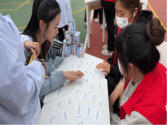 此外,活动现场还设有环保知识问答环节,同学们通过回答环保知识问题卡片上的问题,获得小礼品,进一步加深了同学们对环保的认识。