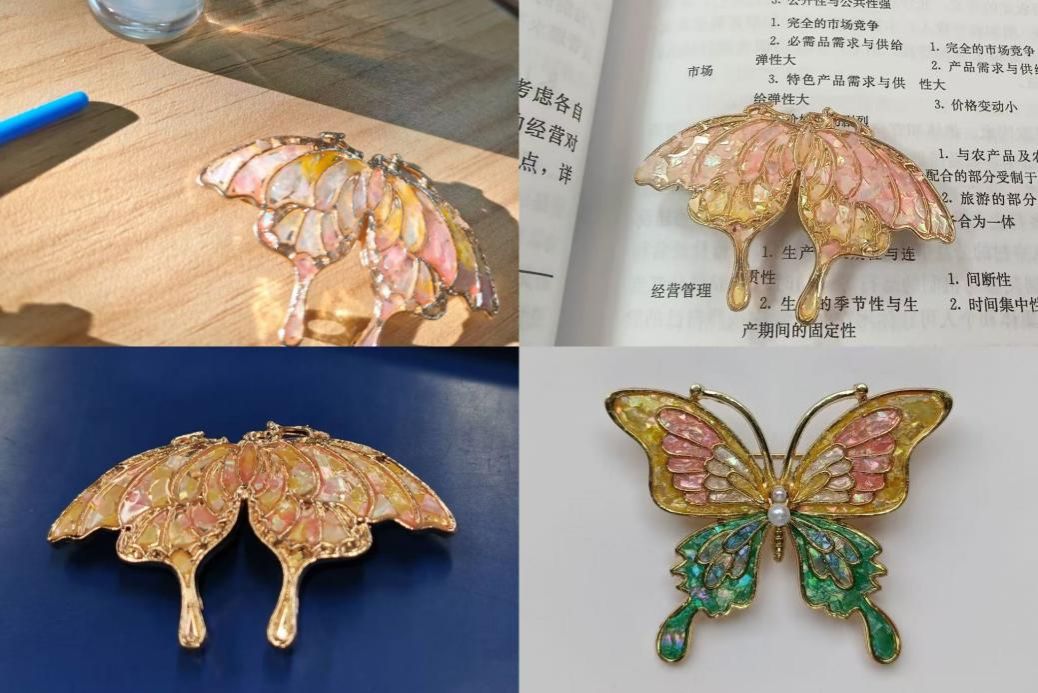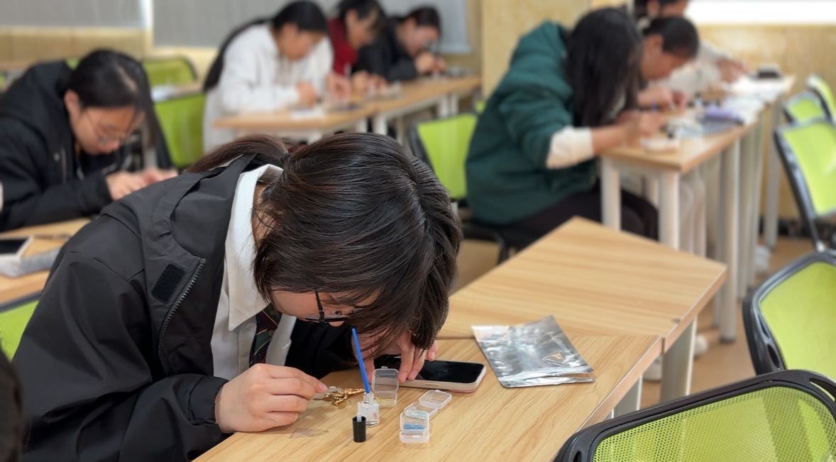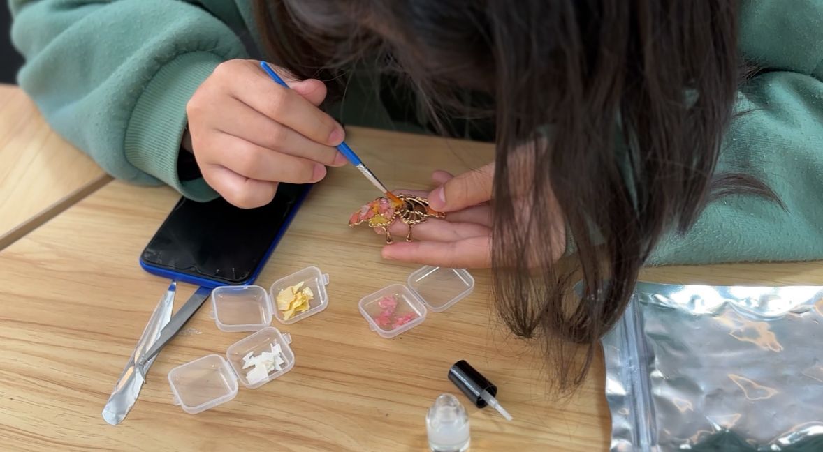 一片片贝壳在同学们的手中变成了精美的艺术品,大家充分发挥自己的创意和想象力,将螺钿与现代设计理念相结合,制作成了各式各样的胸针。