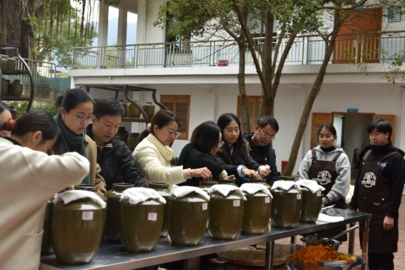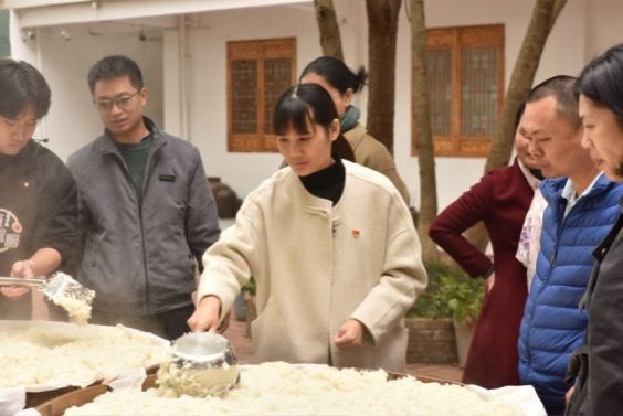 活动中,教工第二党支部全体党员参观了红曲酒酿造蒸饭间与发酵间,观摩、体验了红曲酒冬酿的各个过程,并亲手酿造了属于自己的bat365红曲酒。