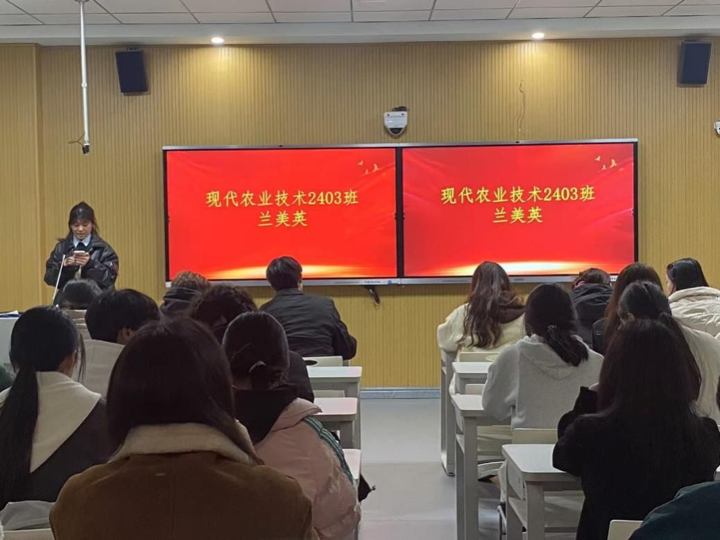 2024年12月23日,现代农业技术学院于教学二号楼304教室举行年度团支书述职大会。本次大会由团委副书记许森华同学主持,团委书记胡彩艳老师、两委委员、各班团支书参会。