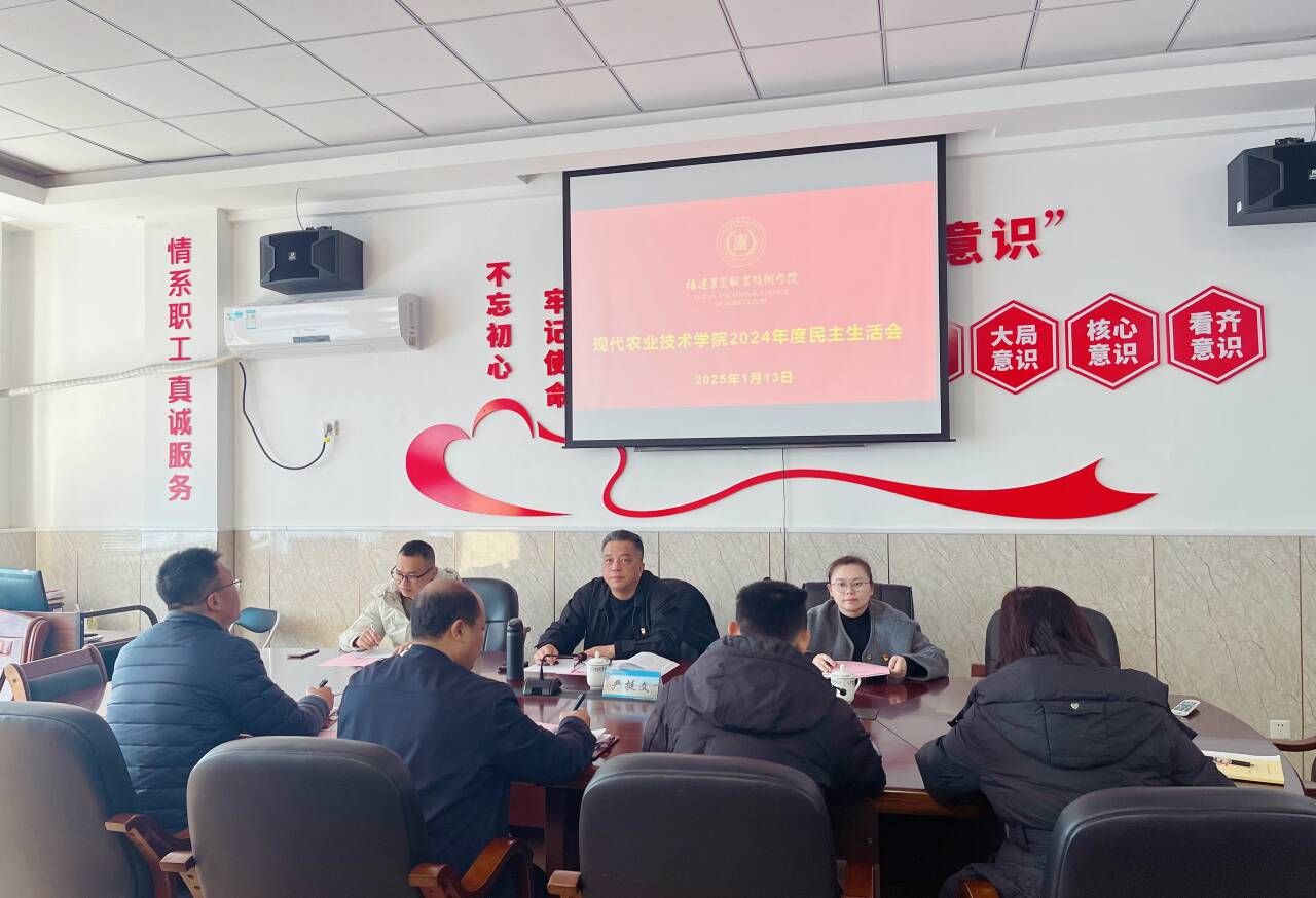 按照学校部署要求,2025年1月13日下午,现代农业技术学院召开了2024年度民主生活会。学院党委委员、副校长严挺文,组织部干部科科长他淑君、纪委办丘烽老师及我院总支班子成员参加会议。会议由党总支欧高政书记主持。