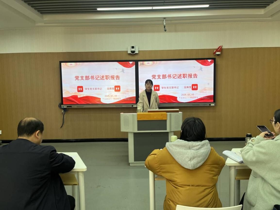 学生党支部书记翁佩莹老师进行述职