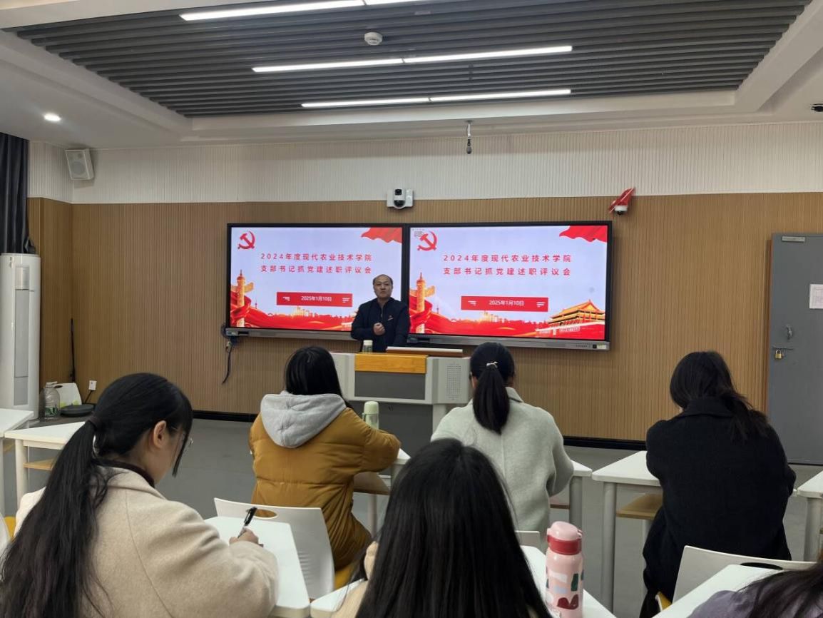 为深入学习贯彻落实党的二十届三中全会精神,坚持和加强党的全面领导,提升基层党建工作质量,落实管党治党政治责任,推进党建与业务深度融合,2024年1月10日下午,现代农业技术学院在教学2号楼305教室召开党支部书记述职会议,会议由党总支欧高政书记主持。