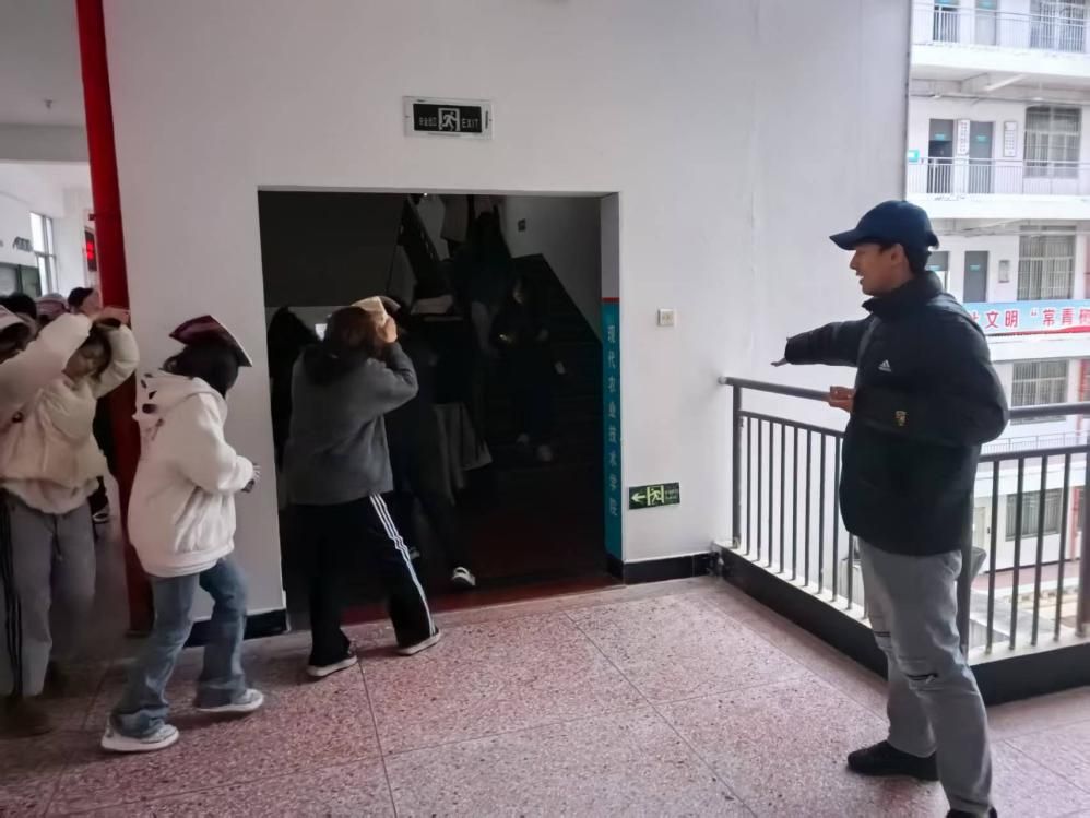 1分钟后,第二声疏散警报拉响,全体师生在楼层引导员的指挥下,沿预定路线快速撤离。过程中,师生保持低姿、紧贴墙壁,全程无奔跑推搡现象。