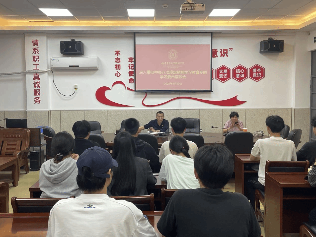5月12日晚,现代农业技术学院的学习委员们迎来一场“干货满满”的座谈会,中央八项规定精神化作生动教学案例走进会议室。学院陈文胜院长、程晓琳老师、刘彩珍老师与30余名师生代表围坐畅谈,共绘教风学风新蓝图。