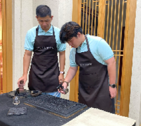 在宁化,非遗不仅“活”在博物馆,更“火”在百姓生活中。实践队来到省级非遗项目——石门山祁剧传承基地,与传承人温贤华老师展开了一场“非遗对话”。2022年,该剧种入选福建省第七批非物质文化遗产名录。在与传承人温贤华老师的交流中,实践队员们深入了解了石门山祁剧的角色分类、服饰设计与唱腔风格。采访过程中,温老师即兴演唱了《红棉袄》的经典唱段,引得同学们纷纷跟着哼唱。温老师还介绍了家族多代人传承祁剧的经历,以及如何结合年轻人喜好,将传统戏曲与现代艺术形式相融合,推动非遗“活起来、潮起来”。“作为土生土长的湖南人,看到家乡的文化在宁化焕发新的生机,我感到非常自豪。”实践队员蒋雨晴分享道,“我们也要讲好文化故事,为中华文化的传承发展贡献青春力量。”