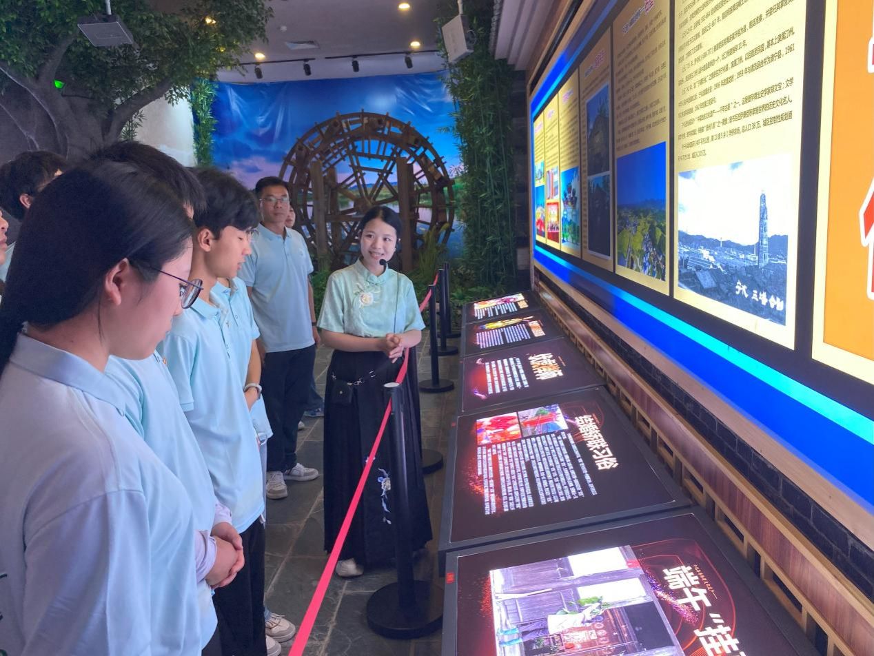 在客家联谊馆,世界版图上280多个客属社团如星子散落,织就一张血脉相连的天网。在客家图书馆,大家驻足翻阅,重温客家先民耕读传家的奋斗历程。在客家族谱馆中,实践队员们还开展了一场特别的“寻根之旅”,查找自己同姓氏的族谱,追溯家族迁徙轨迹。作为客家祖地的宁化,每年吸引数万名海内外客属后裔前来寻根问祖,族谱馆早已成为连接血脉与乡愁的重要文化纽带。团队成员在《客家迁流诗》前驻足良久:“人禀乾坤志四方,任君随处立纲常。年深异境犹吾境,身入他乡即故乡。”此刻,关于客家精神的答案,已在心中升腾。