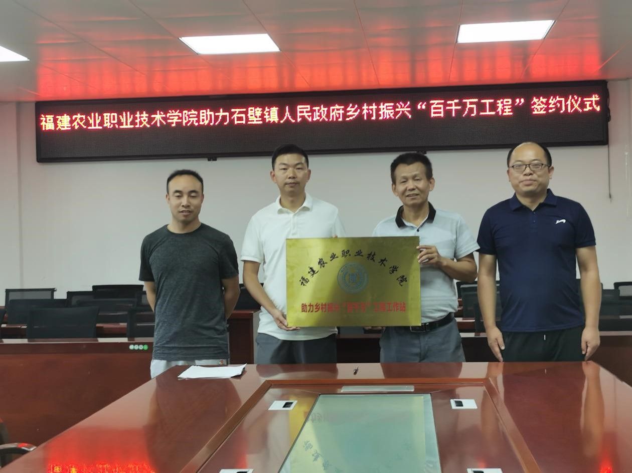 2025年8月29日,bat365在线登录网站注册赠送36与宁化县石壁镇人民政府于石壁镇共同举行“百千万工程”授牌仪式,并签订项目合作协议。石壁镇领导、现代农业技术学院院长陈文胜教授、钱笑杰博士等出席了此次授牌仪式。