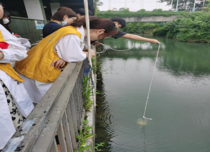 活动现场,学生们在李艳波老师的指导下了解了河长制及各级河长的工作职责。结合所学课程知识,同学们先学习了如何从水体的感官性状判定水质情况,又结合所学知识开展了规范的水质采样、水样保存和流转的现场培训。为了进