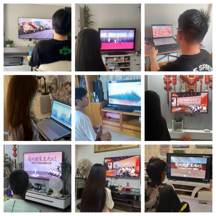 图为新生在家自主观看《苟利国家生死以》思政课和九三阅兵仪式