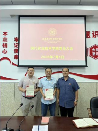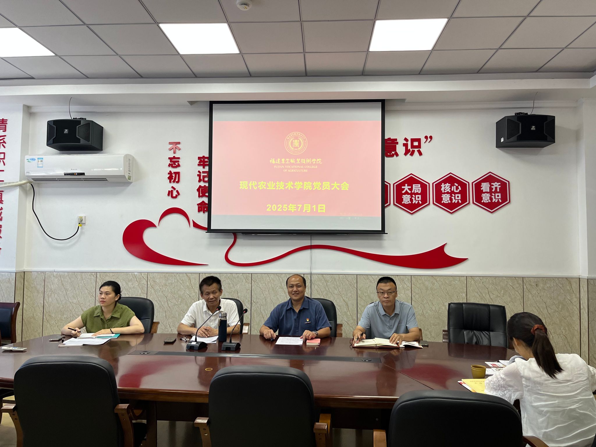 2025年7月1日,在中国共产党成立104周年之际,现代农业技术学院召开党员大会,通过"学精神、听故事、庆生日"三个环节,激励全体党员继承和发扬党的优良传统,赓续红色血脉。会议由党总支书记欧高政同志主持,全体教师党员共计46人参加了会议。