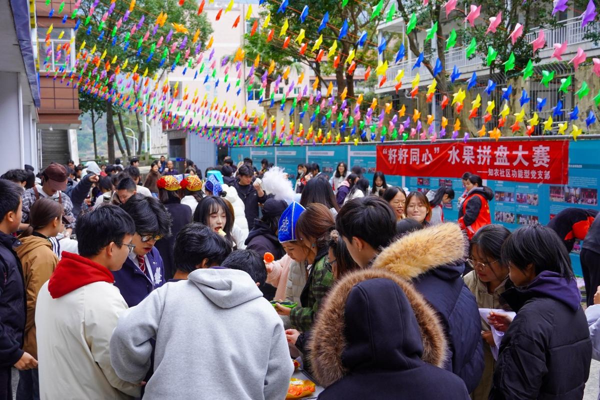 辞旧迎新正当时,籽籽同心暖意浓。12月26日下午,现代农业技术学院知农社区功能型党支部开启了“籽籽同心,辞旧迎新”主题水果拼盘创意大赛。百余名同学齐聚一堂,巧手翻飞,果香四溢,一场融合创意、劳动与团结的青春盛宴悄然上演。以水果为媒,以创意为桥,同学们在欢声笑语中拼出民族情谊,拼出新年愿景,也拼出了属于知农社区的独特温度。