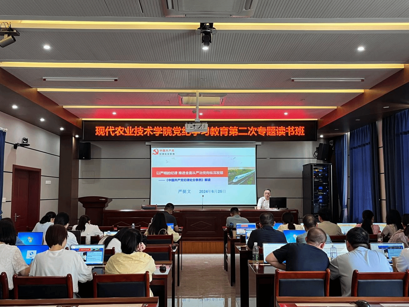 本次读书班,内容丰富,形式多样。通过现场教学、专题党课、理论学习、观看廉政警示教育片等方式,引导党员们深刻领会党纪学习的重要性。现代农业技术学院将以开展党纪学习教育为契机,持续强化理论武装,教育引导党员干部学思践悟、学纪知纪、明纪守纪,做忠诚干净担当的合格党员。