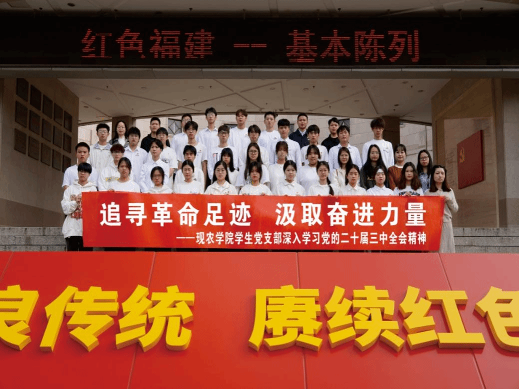 为深入学习贯彻党的二十届三中全会精神,进一步加强党员的思想政治教育,12月6日,我院学生党支部书记翁佩莹组织全体党员前往福建革命历史纪念馆开展“追寻革命足迹,汲取奋进力量”主题党日活动,追寻革命足迹,缅怀革命先烈,传承革命精神。