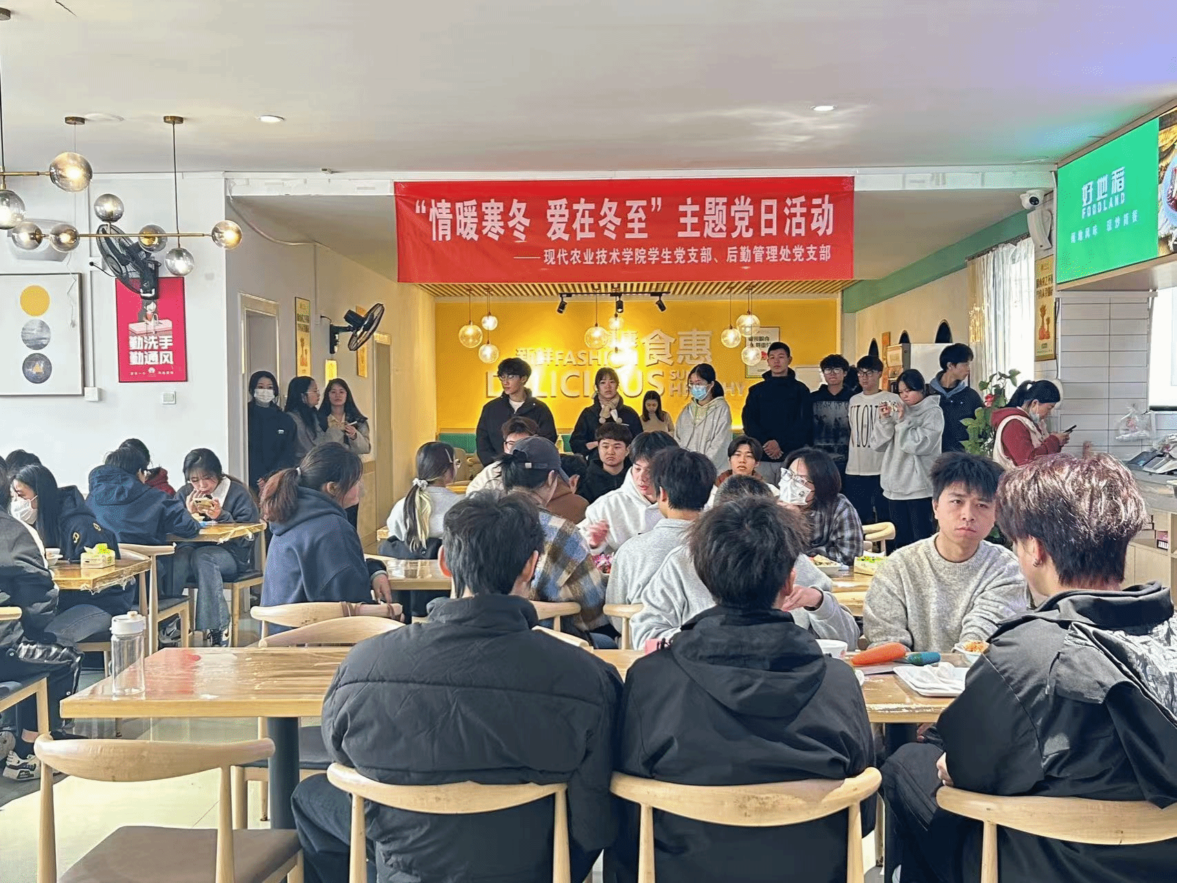 随后,现代农业技术学院学生党支部与后勤管理处党支部在实惠餐厅三楼共同开展“情暖寒冬 爱在冬至”主题党日活动。活动现场热情满满,欢笑不断,支部党员们一边包饺子,一边感受着节日的喜悦和温暖。同时,就学习、工作、生活等方面展开深入的交流,展现了良好的团队协作精神和积极向上的精神风貌。