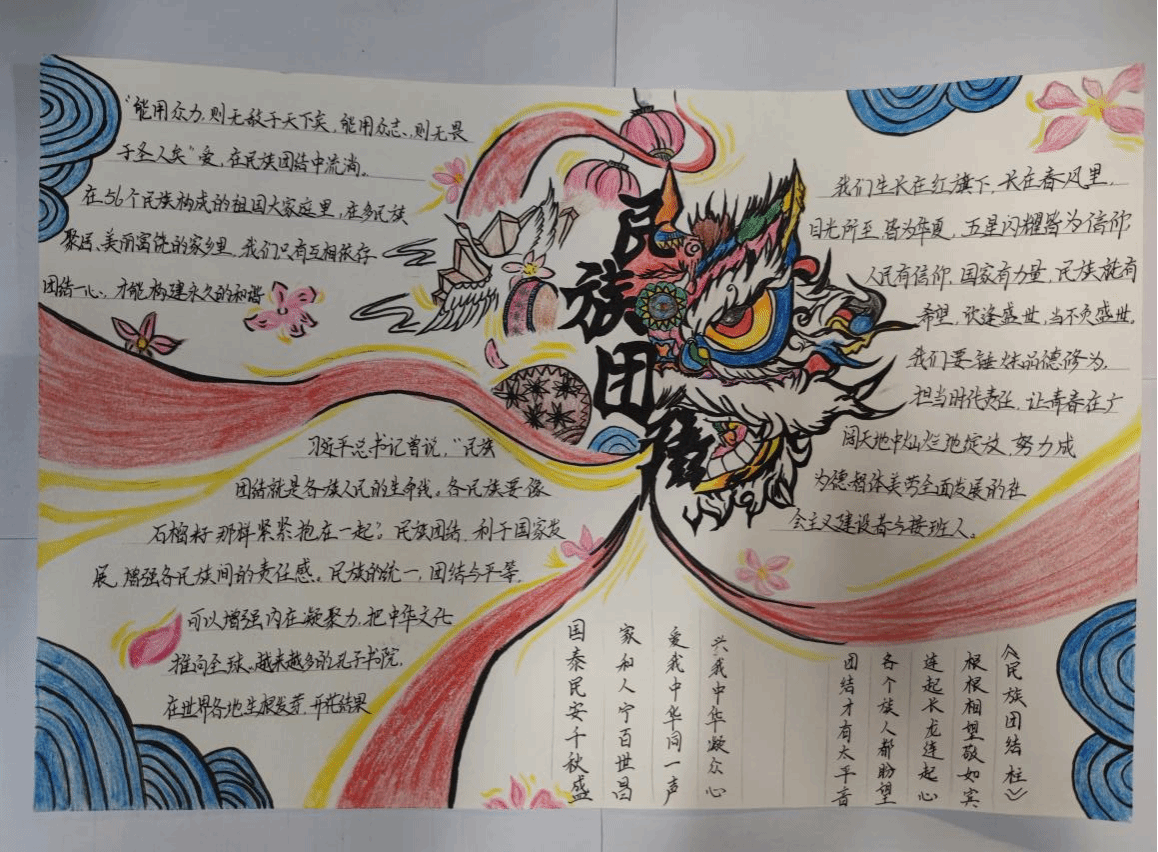 为增强我院学生的爱国意识,全面贯彻党的民族政策,深化民族团结教育进步,铸牢中华民族共同体意识,加强各民族学生交往交流交融,我院于2023年3月27日至31日开展“民族团结一家亲”主题书画活动。